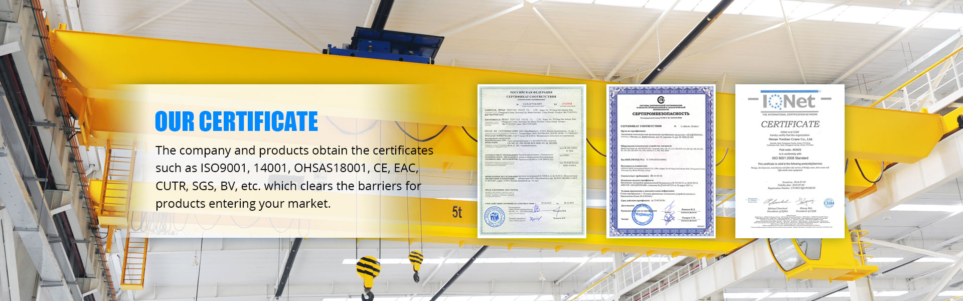 Nou ta ka bay ou tout kalite endistri trepye soti nan 0.25tons 900tons, pase GB / T 19001-2000 idt ISO 9001: 2000, GB / T 24001-2004 idt ISO 14001: 2004, GB / T 28001-2001, OHSAS 18001: 1999, CE, GOST, SGS, TUV, BV ak sou sa.